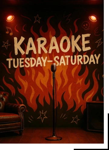 Karaoke: Tuesdays through Saturdays 9:00 pm to CLOSE