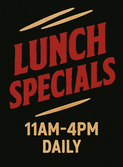 Monday - Saturday: 11am to 2am | Sunday: Noon to Midnight